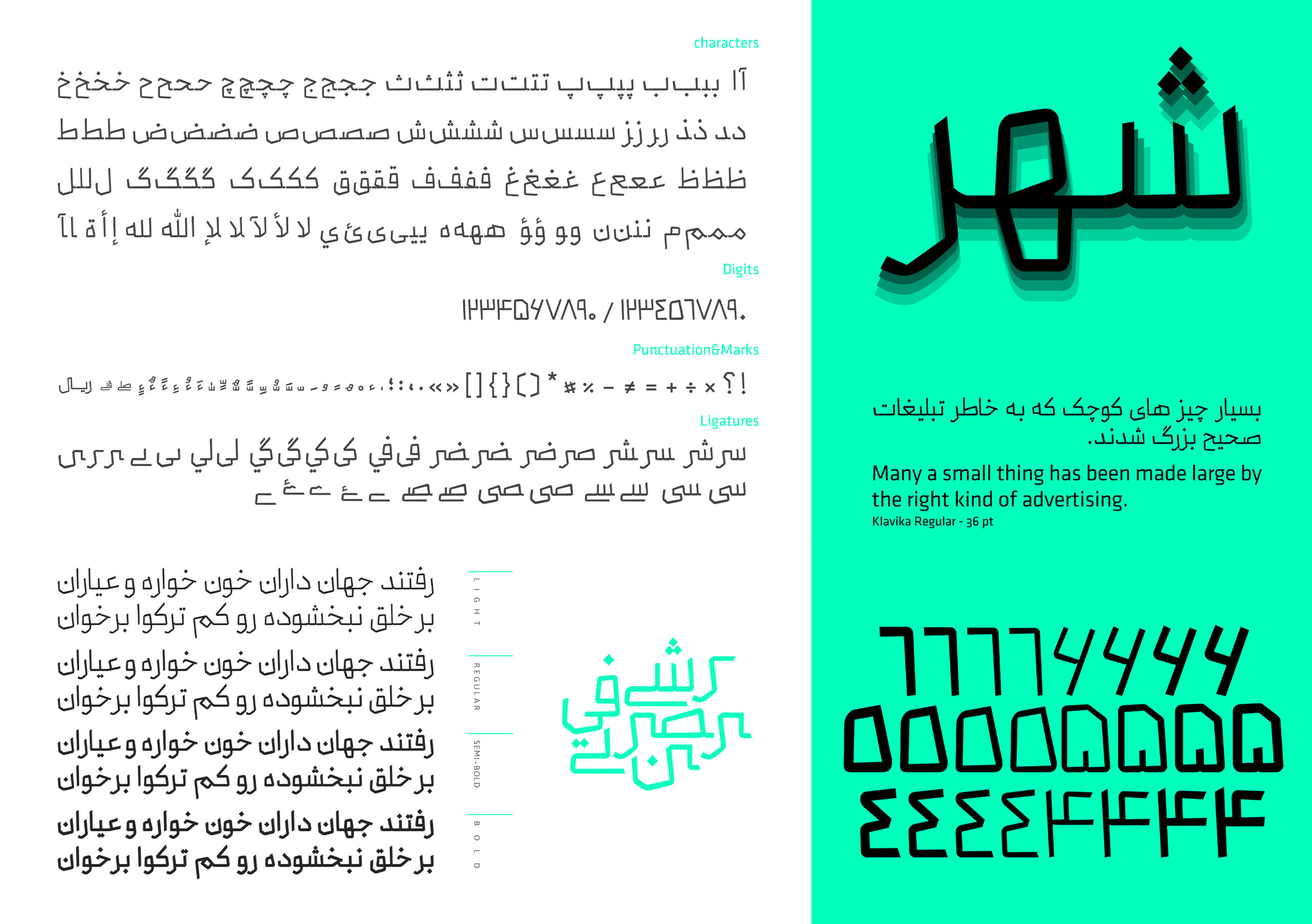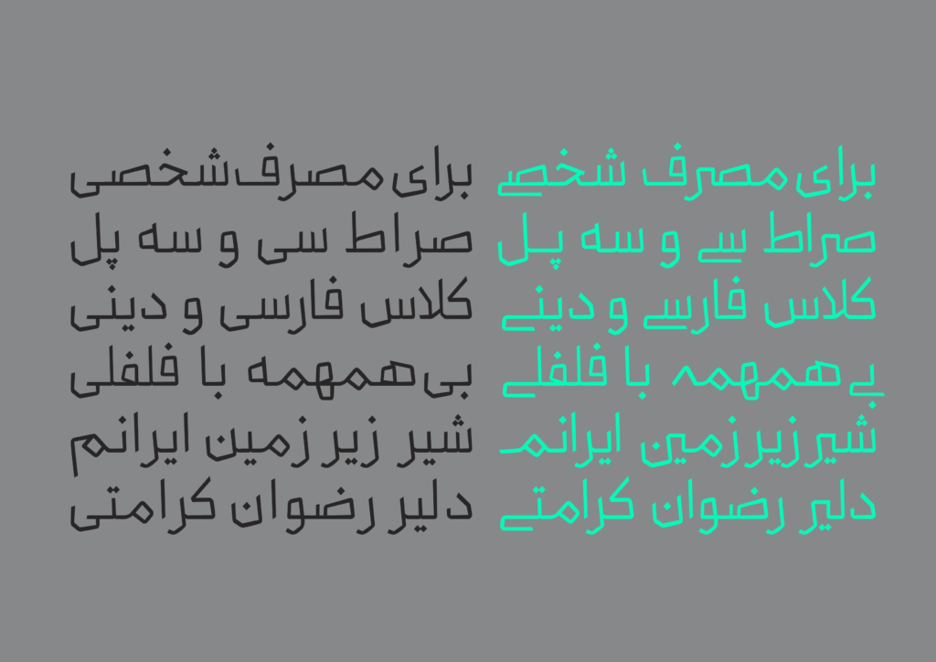 Drawing inspiration from the classic Naskh calligraphy structure, this typeface introduces a modern approach to integrating the rich heritage of the Farsi language into contemporary design projects.